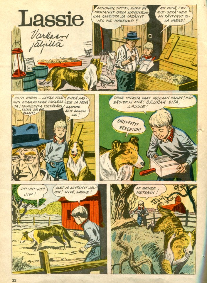 Lassie Varkaan Jäljillä 12 sivua On a Trail of a Prowler Piirtäjä: Bob Fujitani Teksti: Gaylord Du Bois