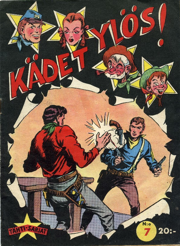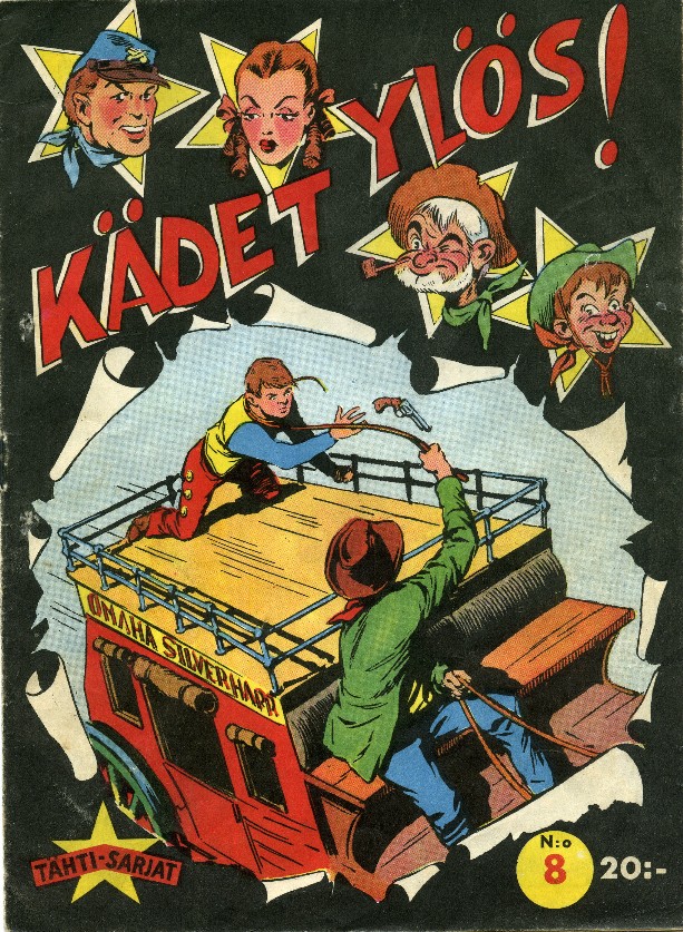 Kädet Ylös! 8 1953Kädet Ylös: Punaisia Varjoja (8 sivua)Piirtänyt: Roy D'AmyJorga - Viidakon Valtias (2 sivua)Teksti: G.L.BonelliPiirtänyt: Tony Chan