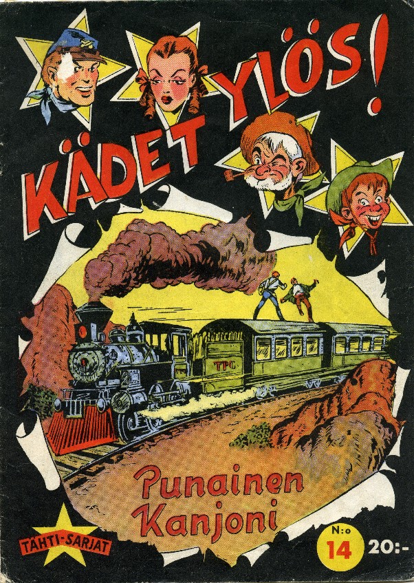 Kädet Ylös! 14 1953Kädet Ylös: Punainen Kanjoni (8 sivua)Piirtänyt: Roy D'AmyJorga - Viidakon Valtias (2 sivua)Teksti: G.L.BonelliPiirtänyt: Tony Chan