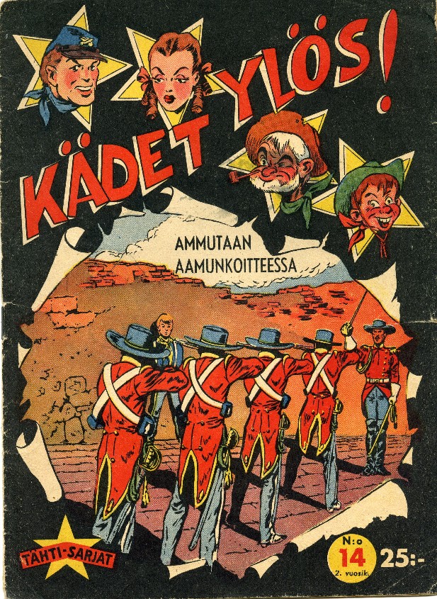 Kädet Ylös! 14 1954Kädet Ylös: Ammutaan Aamunkoitteessa (8 sivua)Piirtänyt: Roy D'AmyJorga - Viidakon Valtias (2 sivua)Teksti: G.L.BonelliPiirtänyt: Tony Chan