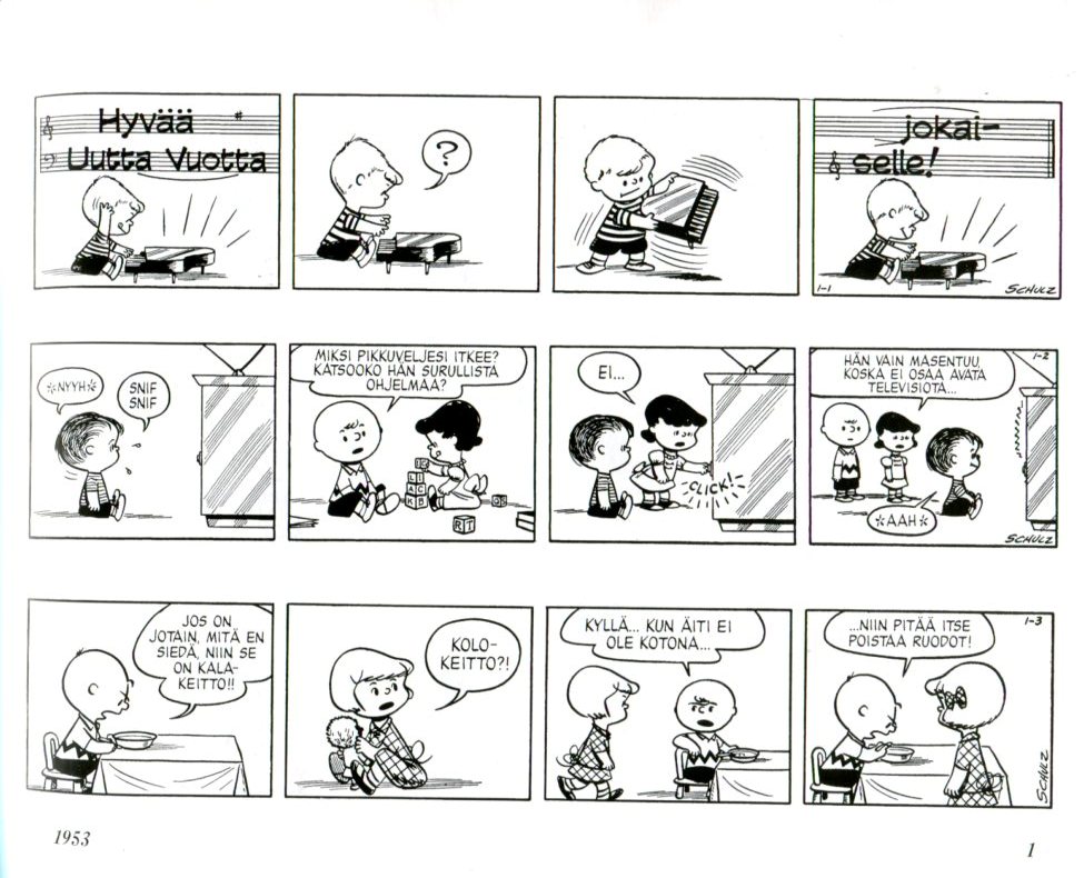 Terveisiä Ressulta1971Tekijä: Charles M.SchulzKoko: 10 cm x 13,5 cmKovat kaksivärikannetyksivärisiä sivuja: 44Kustantaja: Sanoma Oy