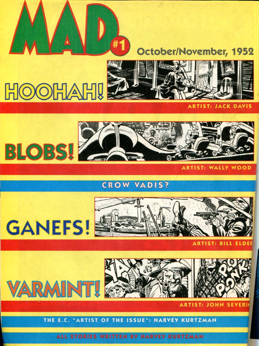 MAD 11952sivu 0Kansi: Harvey KurtzmaKaikki tarinat: Harvey KurtzmanHoohah!Piirtäjä: Jack DavisBlobs!Piirtäjä: Wally WoodGanefs!Piirtäjä: Bill ElderVarmint!Piirtäjä: John Severin