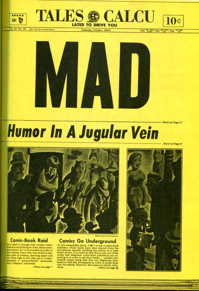 Newspapers! Piirtäjä: Jack Davis Teksti: Harvey Kurtzman Daily Poop (mustavalkoinen sanomalehti - Päivittäinen (t)uloste)