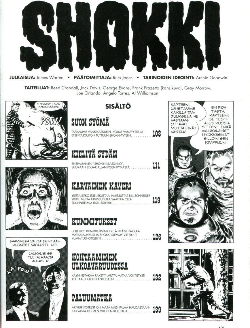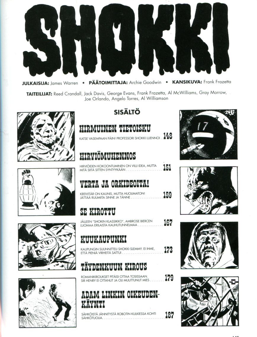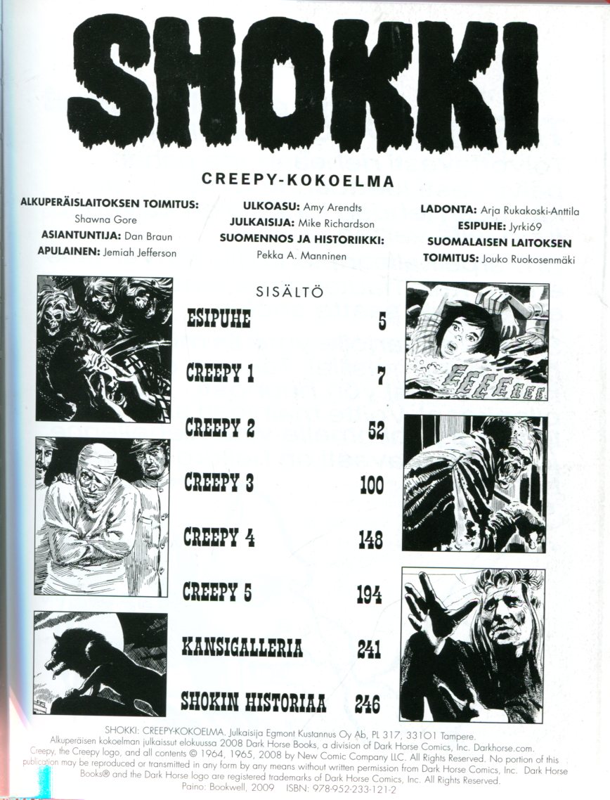 ShokkiCreepy-Kokoelma 12009Creepy 1 - Creepy 5Kansi: Creepy 5 / Frank Frazettakoko: 23 cm x 28,5 cmsivuja: 248kustantaja: Egmont