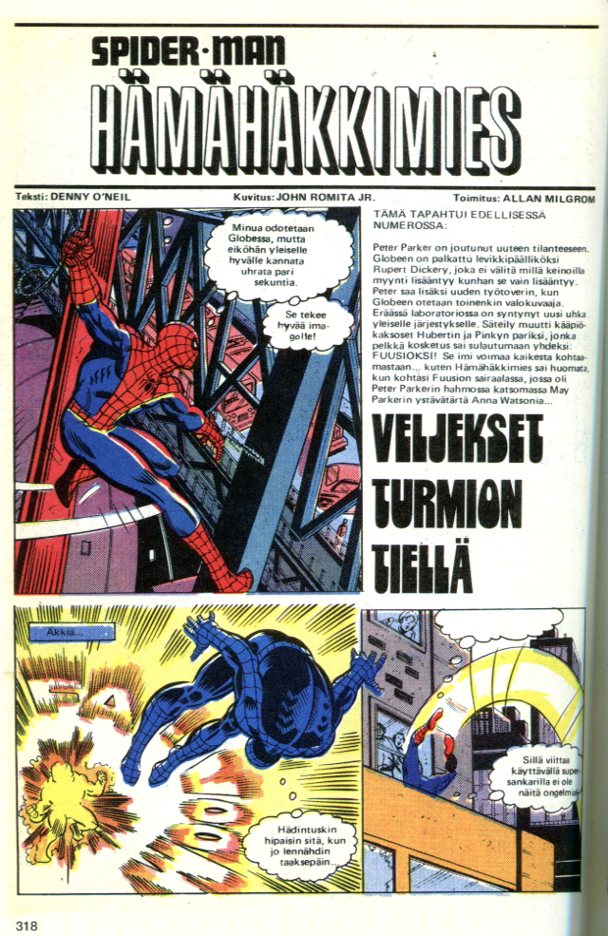 sivu 3 Veljekset Turmion Tiellä (9 sivua) Spider-Man 208 (sep 1980) Fusion! Teksti: Denny O'Neil Piirtäjä: John Romita jr