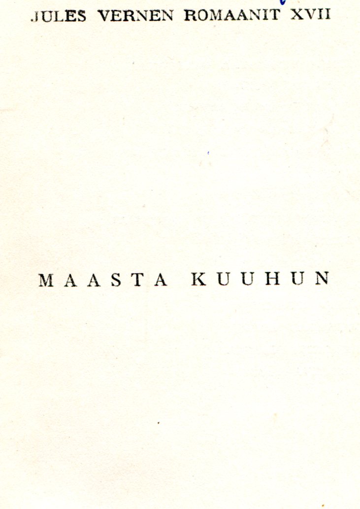 Maasta Kuuhun De la Terre à la Lune (1865) Suomentaja: Edwin Hagfors sivuja: 196 Jules Vernen Romaanit XVII Kariston Nuorisonkirjojaj 87