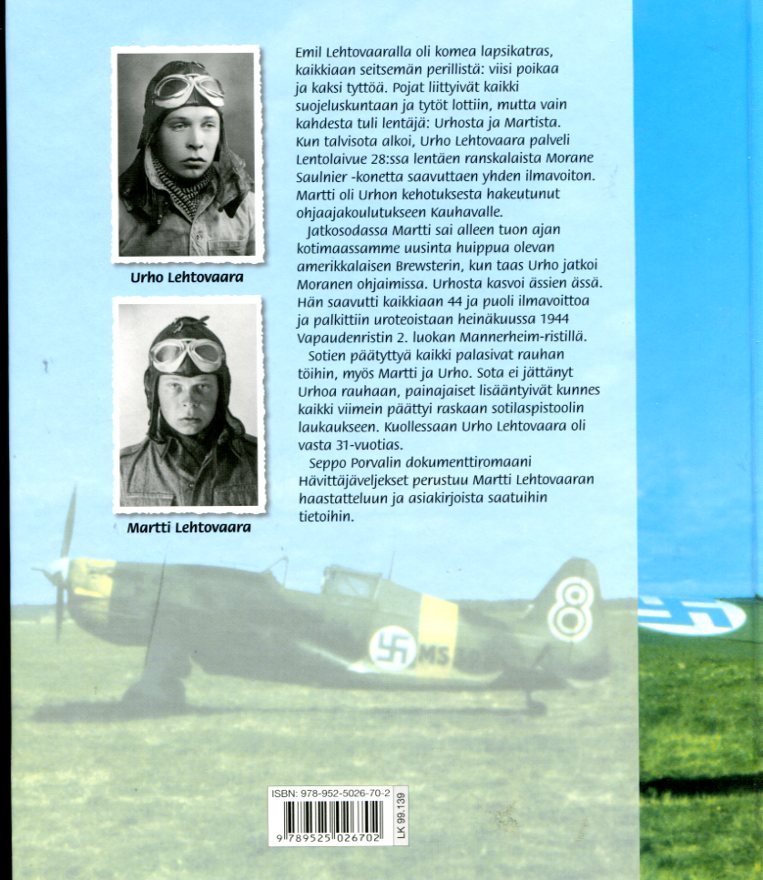 Hävittäjäveljekset2008Kirjoittanut: Seppo PorvaliKansi: Morane Saulnier M.S.406koko: 21,5 cm x 25,5 cmsivuja: 134kustantaja: Apali
