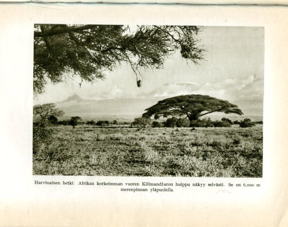 Afrikan Viidakkojen Yli1939Kuvasivu 188 bOver African Jungles (1935)Kirjoittaja: Martin JohnsonSuomentaja: Helmi Krohnkoko: 16 cm x 22,5 cmsivuja: 252kustantaja: Otava