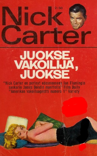 Nick Carter 11966Juokse, Vakoilija, JuokseAlkuperä: Killmaster 1 / Run, Spy, Run (1964)Kirj: Michael Avallone, Valerie MoolmanSuomennos: Veijo H.KainulainenKustantaja: Viihdekirjat