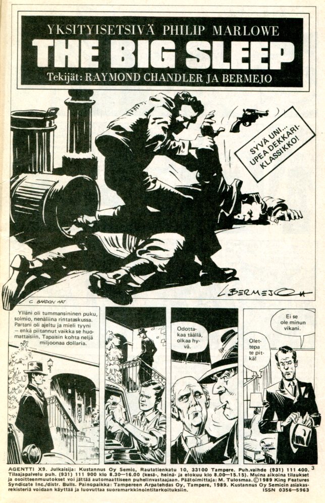 sivu 3 Jännitysklassikko Yksityisetsivä Philip Marlowe The Big Sleep Piirtäjä: Bermejo Teksti: Raymond Chandler