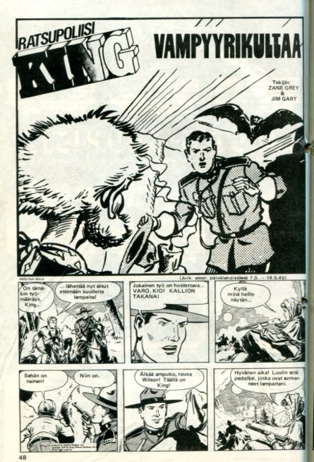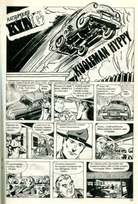 sivu 51 Ratsupoliisi King Kuoleman Hyppy King of Royal Mounted Police Daily: 16.5.1949-23.7.1949 Teksti: Zane Grey Piirtäjä: Jim Gary
