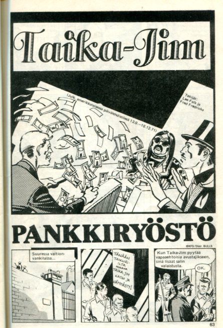sivu 63 Taika-Jim Pankkiryöstö Kolosso, the Magic Man Daily (#148) 13.9.1971-18.12.1971 Teksti: Lee Falk Piirtäjä: Fred Fredericks