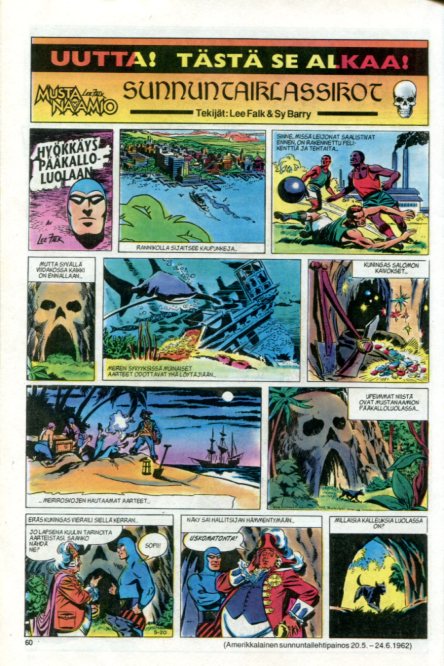 sivu 92 Mustanaamio Sunnuntaiklassikot Hyökkäys Pääkalloluolaan osa 2/4 Treasure of the Skull Cave Sundays (#60-2) 1.7.1962-5.8.1962 Teksti: Lee Falk Piirtäjä: Sy Barry