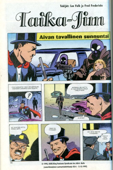 Mustanaamio 32002sivu 46Taika-JimAivan Tavallinen SunnuntaiAn Ordinary SundayDaily (#215) 29.11.1993 - 19.3.1994Teksti: Lee FalkPiirtäjä: Fred Frederics