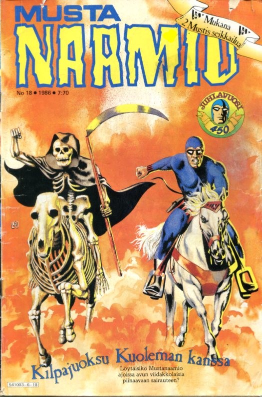 sivu 37 Mustanaamio Ihmeiskijän Salaisuus Piirtäjä: Özcan Eralp Käsikirjoittajaksi on merkitty Lee Falk. Muistaakseni vastaavanlainen nyrkkeilyjuoni on ollut Mustanaamiossa jo aikoinaan Wilson McCoyn piirtämänä, joten siltä pohjalta kässäri saattaisi perusteiltaan ollakin Lee Falkin käsialaa, jonka Özcan Eralp on muokannut uuteen uskoon.