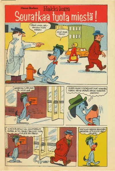 sivut 27-30 Hakki-Koira Seuratkaa Tuota Miestä! Huckleberry Hound Tail That Man! Piirtäjä: Teksti: