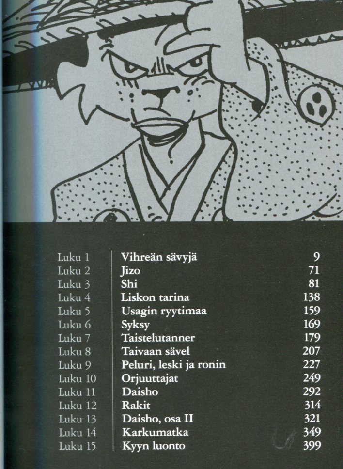 UsagiYojimbo4Häivähdyksiä Kuolemasta2023Tekijä: Stan SakaiKääntäjä: Vesa HeinoKustantaja: Zum Teufel408 sivua