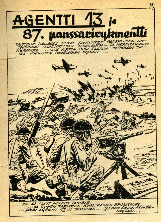 b) Agentti 13 ja 87. Panssarirykmentti 32 sivua Spy 13 & the Peril of the Panzers Piirtäjä: Leone Cimpellin Teksti: E.J.Bensberg