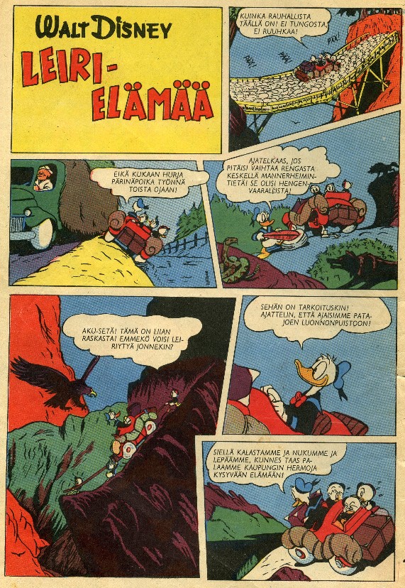 Aku Ankka 7 1955 Leirielämää Sivu a2 Piirtäjä-Kertoja: Carl Barks
