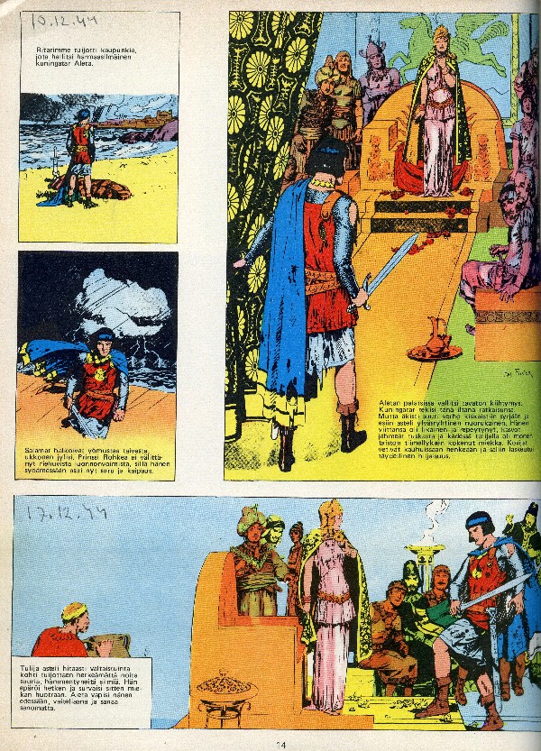 Prinssi Rohkea n:o 5Aleta1977Alkup.sivut: 394-459 (ruutuja oli järjestelty monilla sivuilla uuteen järjestykseen ja eri kokoihin).Piirtänyt ja kertonut: Hal Foster