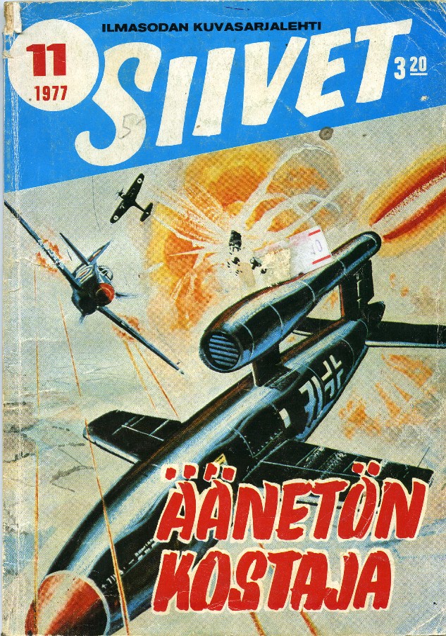 Siivet 11 1977sivu 5Äänetön KostajaKansi: Alan WillowV-1 + TempestÄänetön KostajaAir Ace Picture Library 279 (1966)Hinters of the V-1Piirtäjä: Ian KennedyTeksti: S.J.Bounds