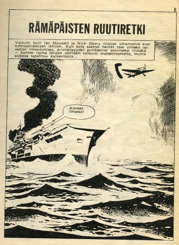 Siivet 2 1978sivu 5Rämäpäisten RuutiretkiKansi: Alan WillowGrumman AvengerRämäpäisten RuutiretkiAir Ace Picture Library 282 (1966)Sea-Mine MenacePiirtäjä: Jose OrtizTeksti: S.J.Bounds