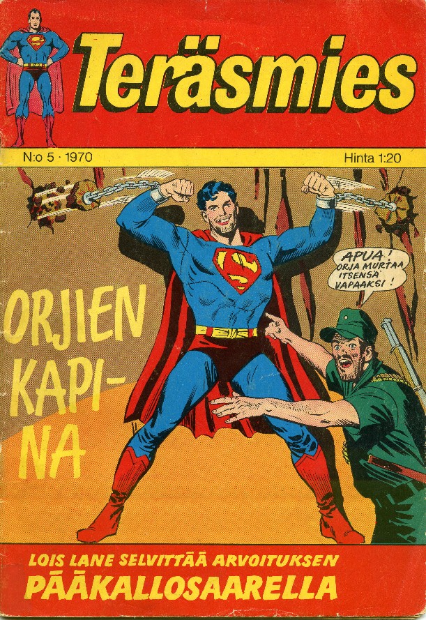 TERÄSMIES 5/1970Sivu 1Tarina: Teräsmies:Clark Kent taikuriSivuja: 14 s.Kirjoittaja: Leo DorfmanPiirtäjä: Curt SwanTussaaja: George RoussosOriginaali: Superman:Clark Kent, Magician!Action Comics 382 (Nov 1969)