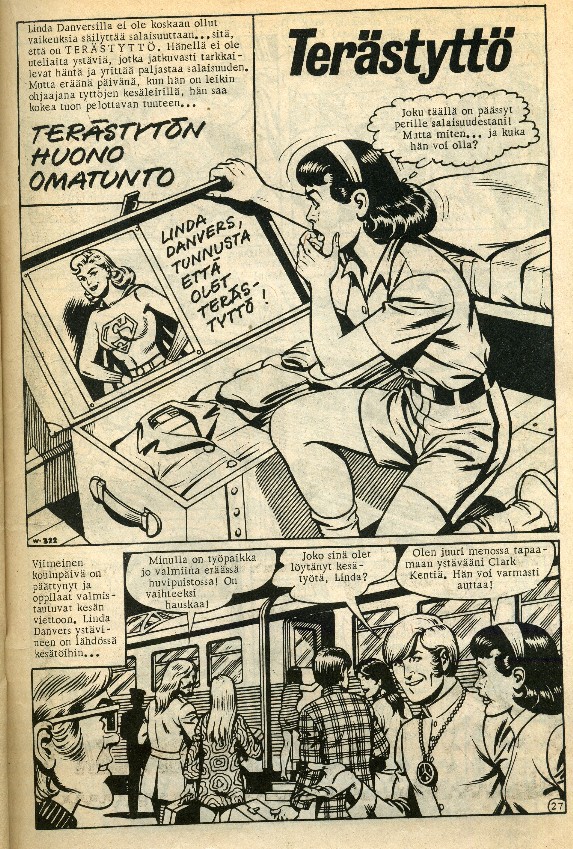 Tarina: Terästyttö: Terästytön huono omatunto Sivuja: 10 s. Kirjoittaja: Robert Kanigher Piirtäjä: Kurt Schaffenberger Tussaaja: Kurt Shaffenberger Originaali: Supergirl: Supergirl’s Greatest Failure Adventure Comics 384