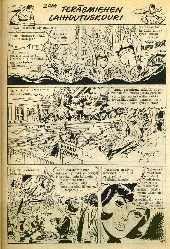 Tarina: Teräsmies: Teräsmiehen laihdutuskuuri (osa 2/2) Sivuja: 5 s. Kirjoittaja: Cary Bates Piirtäjä: Curt Swan Tussaaja: George Roussos Originaali: Superman: The Two-Ton Superman! Superman 221 (Nov 1969)