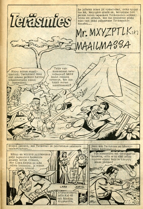 Tarina: Teräsmies: Teräsmies Mr. MXYZPTLK:n maailmassa Sivuja: 10 s. Kirjoittaja: Jerry Siegel Piirtäjä: Al Plastino Tussaaja: Al Plastino Originaali: Superman: The World of Mr. MXYZPTLK! Action Comics 273 (Feb 1961)