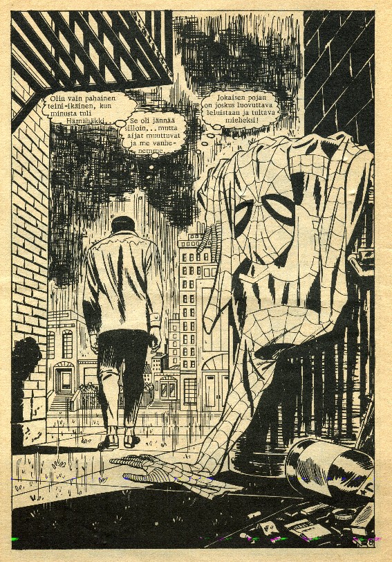 Tarina: Hämmästyttävä Hämähäkki: Hämähäkki lopettaa Sivuja: 20 Kirjoittaja: Stan Lee Piirtäjä: John Romita Tussaaja: Mickey Dimeo Originaali: Spider-Man: Spider-Man No More! The Amazing Spider-Man 50 (Jul 1967) Julk. myös: Hämähäkkimies Sarjakirja 98 (1984): Hyvästit Hämähäkille! Hämähäkkimies Spesial 1/1991: Hämähäkin loppu!