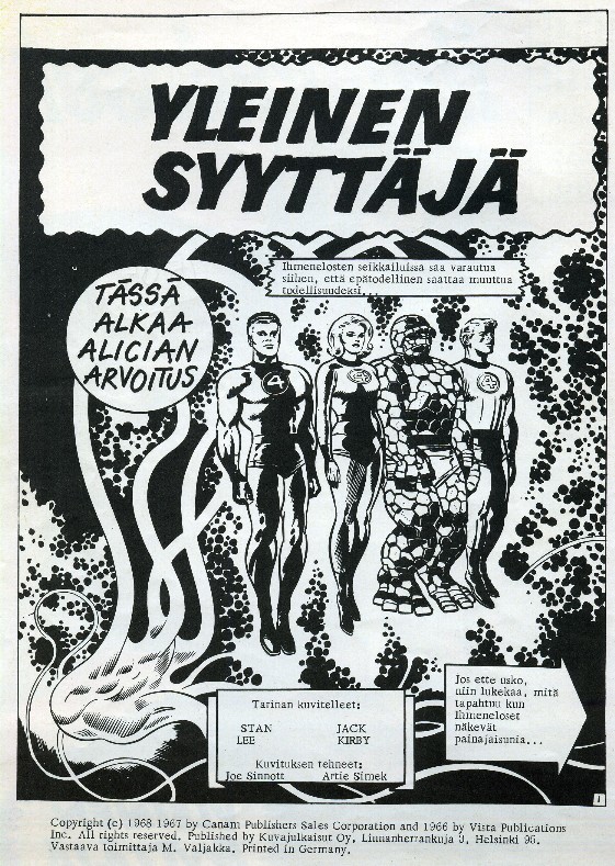 IHMESARJA 22Joulukuu 1967Sivu 21Tarina: Namor:Kuolema porttien takana (osa 2/2)Sivuja: 7 s.Kirjoittaja: Stan LeePiirtäjä: Bill EverettTussaaja: Dan AdkinsOriginaali: Sub-Mariner:Outside the Gates Waits.. Death!Tales to Astonish 91 (May 1967)