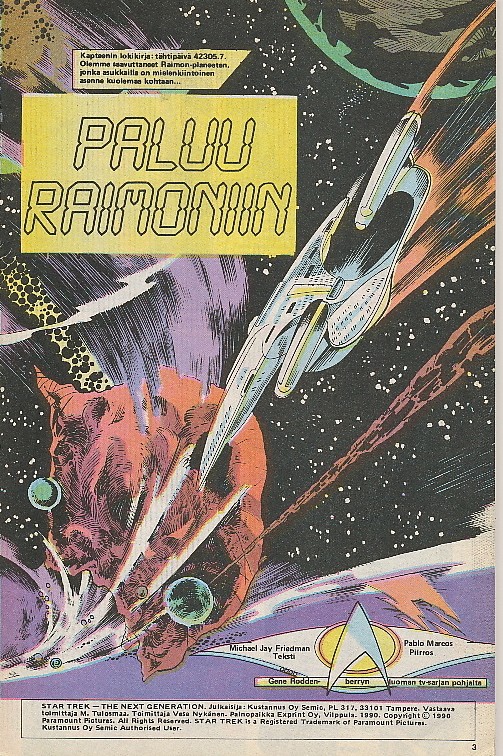 sivu 3 Paluu Raimoniin Return to Raimon Star Trek the Next Generation 1 (oct 1989) Piirtäjä: Pablo Marcos Teksti: Michael Jan Friedman