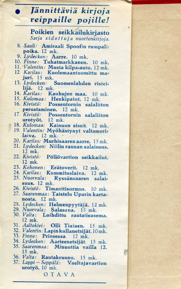 Intian Viidakoista II1933kolmas PainosThe Second Jungle Book (1895)Kirjailija: Rudyard KiplingKansi: Kuvittaja: John Lockwood Kipling (Rudyarin isä)Suomentaja: Helmi KrohnKustantaja: OtavaSarja: Nuorten Kirjoja