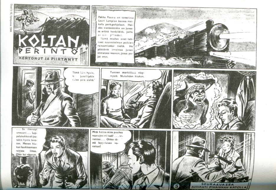 Laikku 052005sivu 87Kotimaiset Kuvasarjat1900-1945SyöksypommittajatJulkaistiin Helsingin Sanomissa 1943-44Piirtäjä: Egon MeronenTarina: Rolf Dahlgren