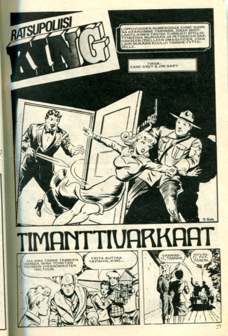 Mustanaamio 11981sivu 27Ratsupoliisi KingTimanttivarkaatKing of the Royal MountedKäsikirjoitus: Zane GreyPiirtäjä: Jim Gary