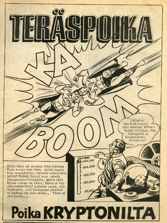 Tarina: Teräspoika: Poika Kryptonilta Sivuja: 12 s. Kirjoittaja: Otto Binder Piirtäjä: Curt Swan Tussaaja: Stan Kaye Originaali: Superboy: The Kid from Krypton Adventure Comics 242 (Nov 1957)
