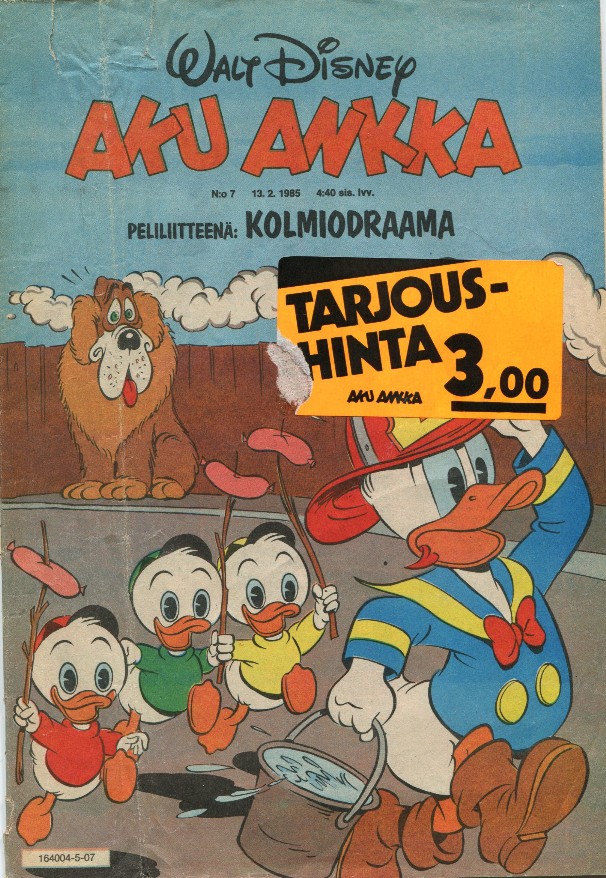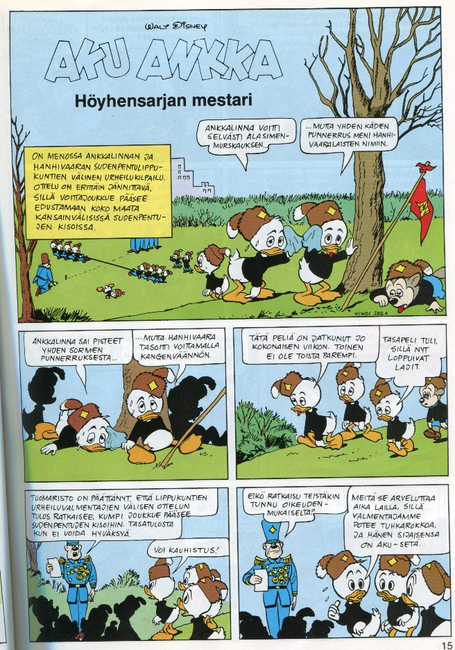 Aku Ankka 471965Kansi: Nils RydahlVoitto kotiin - vahingossa8 sivuaWDC 282 (1964) Bubbleweight ChampUusinta: Aku Ankan Parhaat 48 (1994)