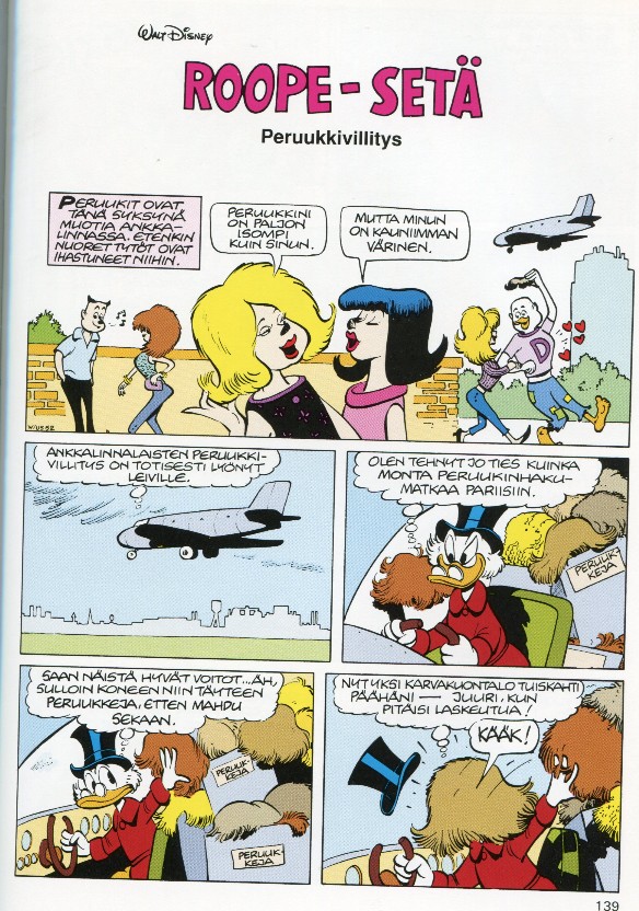 Aku Ankka 371966Kansi: Nils RydahlRoope-SetäPeruukkivillitys osa 1/3sivuja: 5/20Uncle Scrooge 52 (1964)The Great Wig MysteryUusinta: AAJ 3Sivu on otettu uusintapainoksesta:Aku Ankan Juhlasarjat 3
