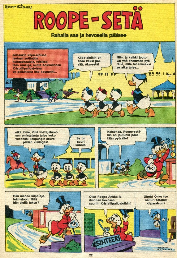 Roope-Setä Rahalla saa ja hevosella pääsee 1/3 sivuja: 10/24 US 66 (1966) The Heedless Horseman Uusinta: Aku Ankan Toivesarjat 1978