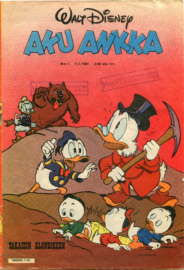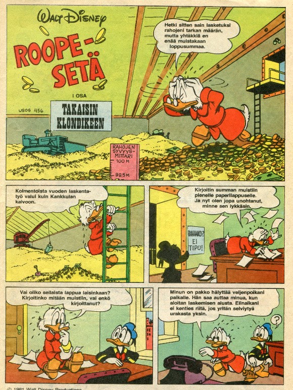 Jollen vallan väärin muista, niin suomalaisissa Aku Ankan numeroissa 1-3 1981 julkaistiin Back to the Klondike ensimmäistä kertaa maailmassa täydellisenä eli USA:ssa aikoinaan sensuroidut sivut olivat tässä mukana.