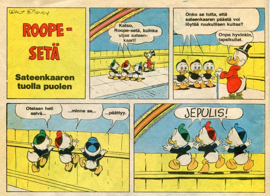 Roope-Setä Sateenkaaren tuolla puolen 1 Four Color 495 (1953) Follow the Rainbow Uusinta: Aku Ankan Parhaat 47