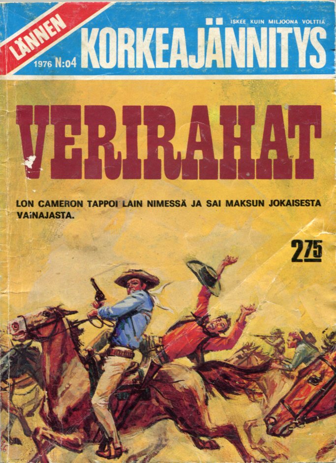 Lännen Korkeajännitys 41976VerirahatKansi: VÄÄRÄ - TuntematonVerirahatAlkuperä:Cowboy Picture Library 440 (1962)Raw DealPiirtäjä: Renato PoleseAlkup kansiPiirtäjä: Nino Caroselli