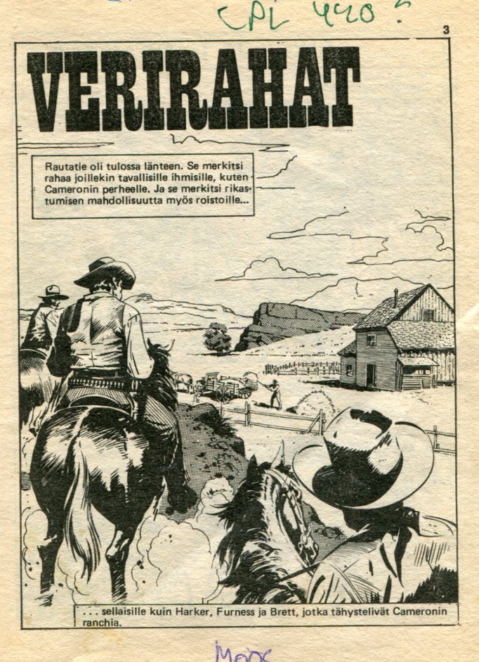 Lännen Korkeajännitys 51976Kunnian KallioKansi: VÄÄRÄ - TuntematonKunnian KallioAlkuperä:Cowboy Picture Library 466 (1962)Death and GloryPiirtäjä: Carlos V.RoumeAlkup kansiPiirtäjä: Jordi Penalva