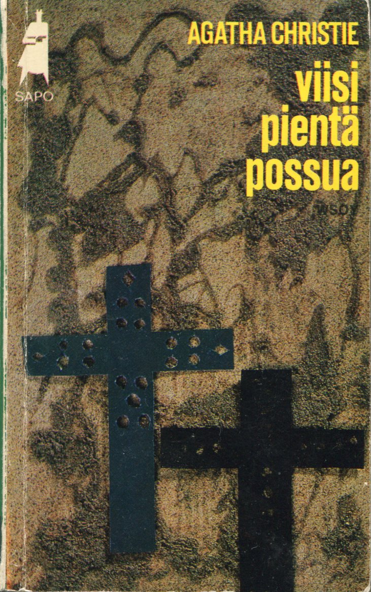 Viisi Pientä Possua1975kolmas painos(1.painos 1948 Viisi Pientä Porsasta)Five Little Pigs (1943)Kirjailija: Agatha ChristieSuomentaja: Anna-Liisa LaineKansi: AhtialaSarja: SaPo 127Kustantaja: WSOY