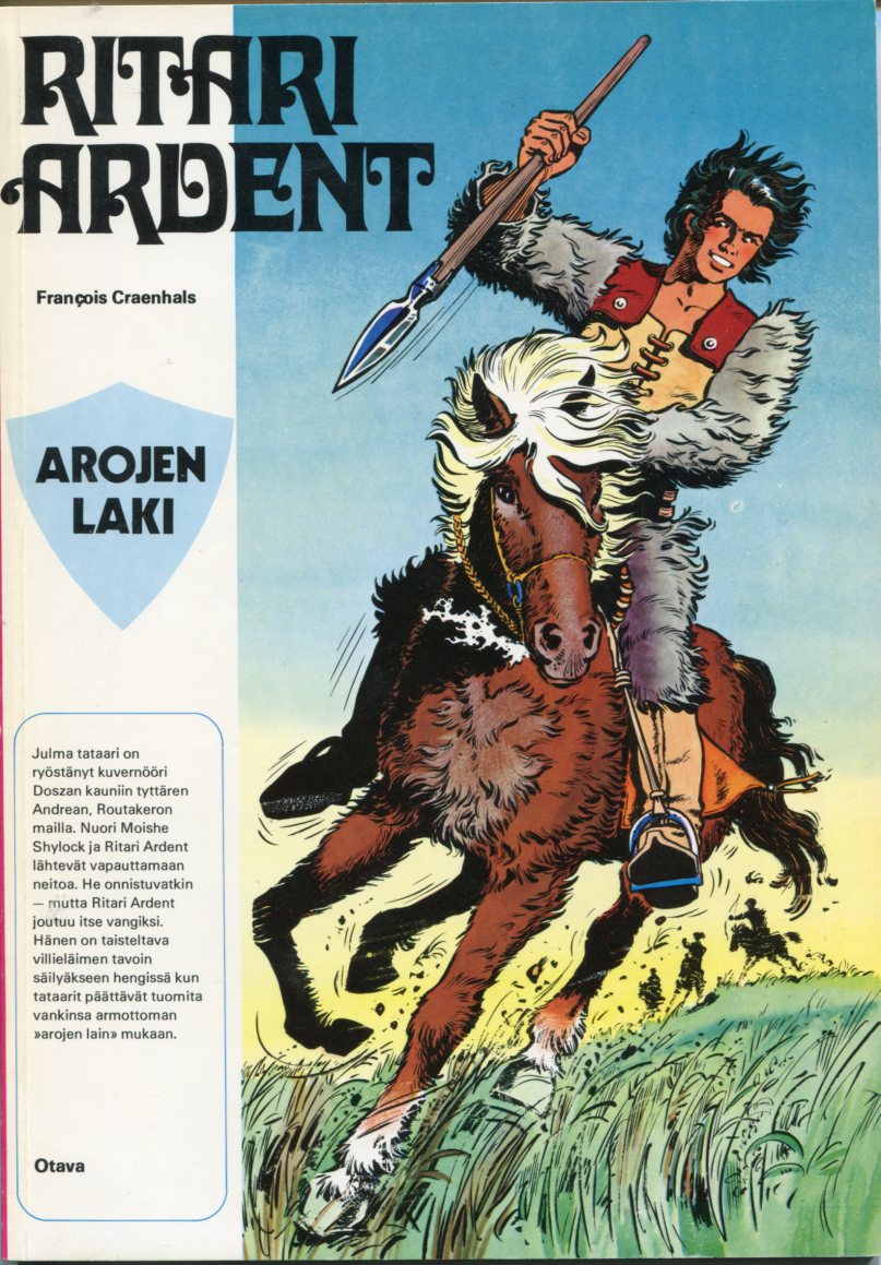 Ritari Ardent 3Arojen Laki1977sivu 3Ritari ArdentChevalier ArdentArojen LakiLa Loi de la Steppe (1971)Piirtäjä: Francois CraenhalsTeksti: Francois Craenhals4-värisivuja: 44Kustantaja: Otava