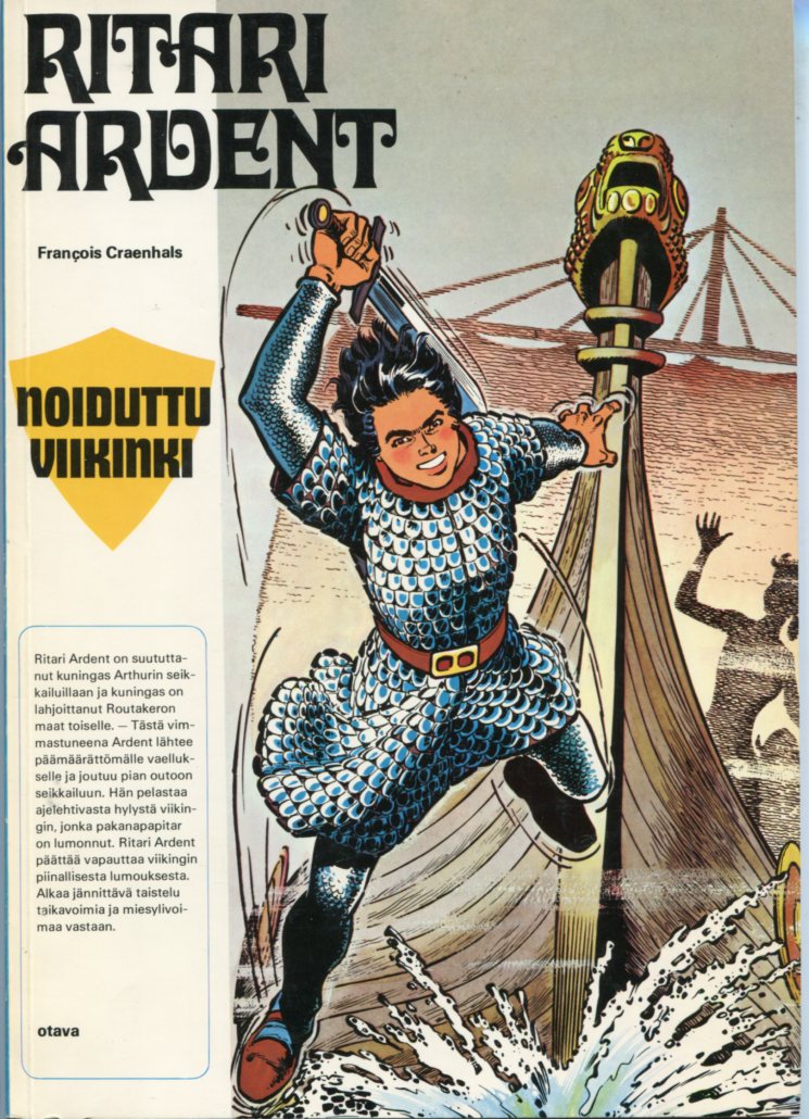 Ritari Ardent 4Noiduttu Viikinki1978Ritari ArdentChevalier ArdentNoiduttu ViikinkiLa Corne de brume (1972)Piirtäjä: Francois CraenhalsTeksti: Francois Craenhals4-värisivuja: 44Kustantaja: Otava