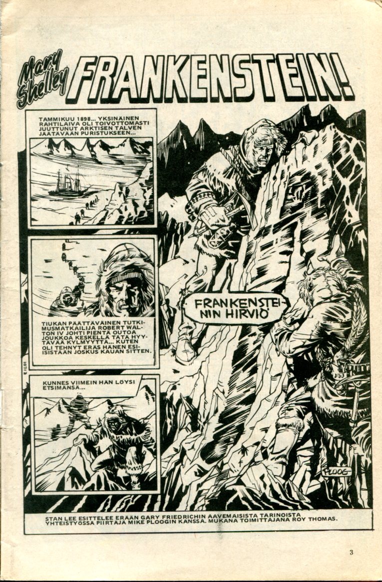 sivu 3: Frankenstein! Piirtäjä: Mike Ploog Tarina: Mary Shelley
