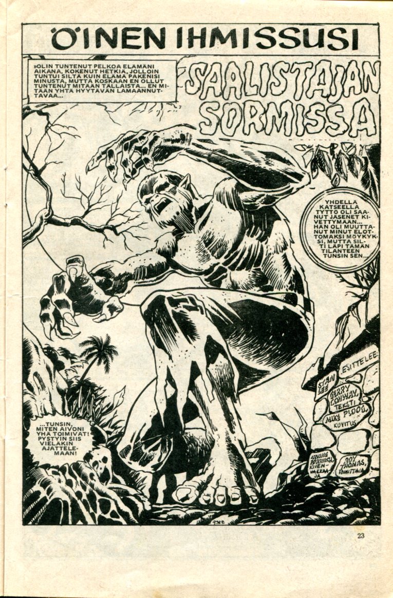 sivu 23: Öinen Ihmissusi Saalistajan Sormissa Stan Lee Esittelee Piirtäjä: Mike Ploog Teksti: Gerry Comway