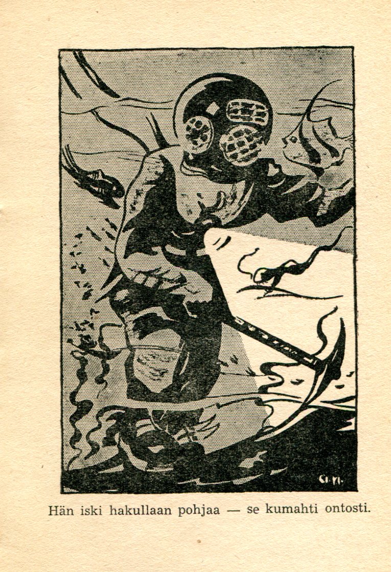 Kirjasarja Seikkailujen MaailmaKaribian Merirosvot1951sivu 127toinen painosKirjailija: Tauno KarilasKuvitus: Aarne NopsanenKustantaja: Otava